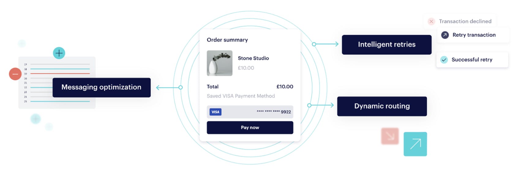 Intelligent Acceptance: Checkout.com’s intelligent acceptance solution utilizes AI and global network data to help merchants increase conversion rates. To date, the service has generated up to a 9.5% uplift in results while recording $741 million in revenue and leveraging over 20 billion data points for AI training. The service can identify when to use network tokens to unlock cost efficiencies with issuers using that method of credential-sharing method. Additionally, intelligent acceptance can determine whether strong customer authentication (SCA) is needed.