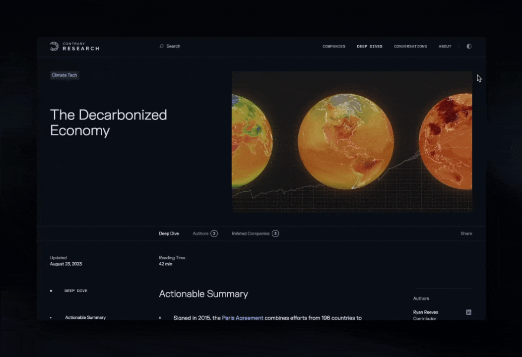 Lastly, we’ve added one of the most asked-for features from the Contrary Research audience: light mode. With this addition, you can easily toggle between the two color schemes of Contrary Research, light and dark, to find your optimal reading experience.